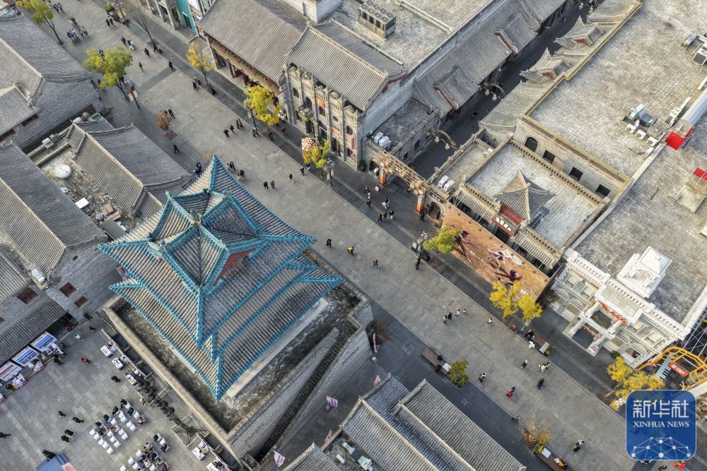 "新華社發(劉亮亮 攝)↑ 山西省呂梁市臨縣磧口古鎮一角(10月29日攝,無人機照片)。" 磧口新生 古鎮新“味”